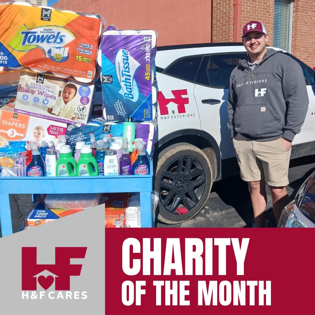 For the month of March, H&F Exteriors was proud to partner with Maryland Moats Lexow Insurance to donate items to the Good Samaritan House. We donated a variety of products such as paper, dish soap, Lysol spray, and much more.