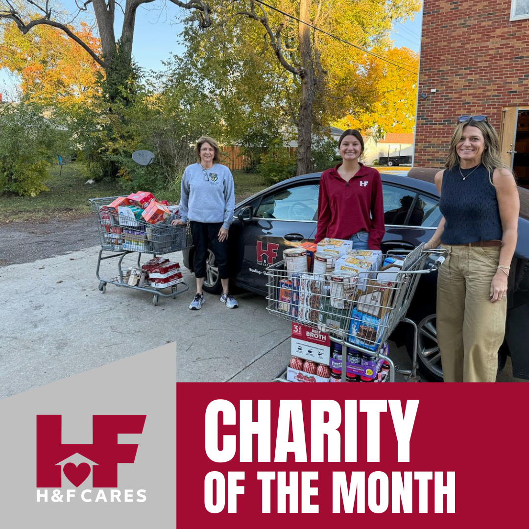In May, we teamed up with AAdvantage Insurance Group and donated to the Collinsville Food Pantry. The food pantry is available to residents who are enduring hardship. Clients “shop” for groceries and household items and choose what they need at no cost to them. H&F donated a variety of items such as soup, toilet paper, sauces, noodles, canned goods, and more.